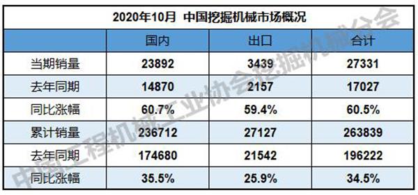挖掘机据中国工程机械工业协会统计,2020年10月纳入统计的25家挖掘机制造企业共销售各类挖掘机27331台,同比增长60.5%;其中国内23892台,同比增长60.7%;出口3439台,同比增长59.4%。2020年1-10月,共销售挖掘机2638…......