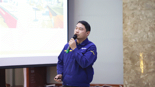 结束现场参观之后,总结会正式开始。精益推进组组长围绕“辅导历程回顾”、“辅导绩效回顾”、“实施历程回顾”、“优秀项目评比”以及“冲刺展望”五方面,作项目阶段工作汇报。